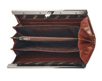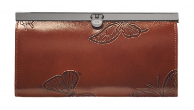 Кошелек торговой марки Malgrado из натуральной кожи, высшего качества, с узором бабочек по поверхности. У кошелька пять основных отделения одно из них на молнии. В кошельке есть по три кармашка на боковых стенках для карточек, визиток, кредиток, два прозрачных кармашка, в которые можно положить пропуск, проездной билет или фотографию. Закрывается на небольшой металлический замочек.
