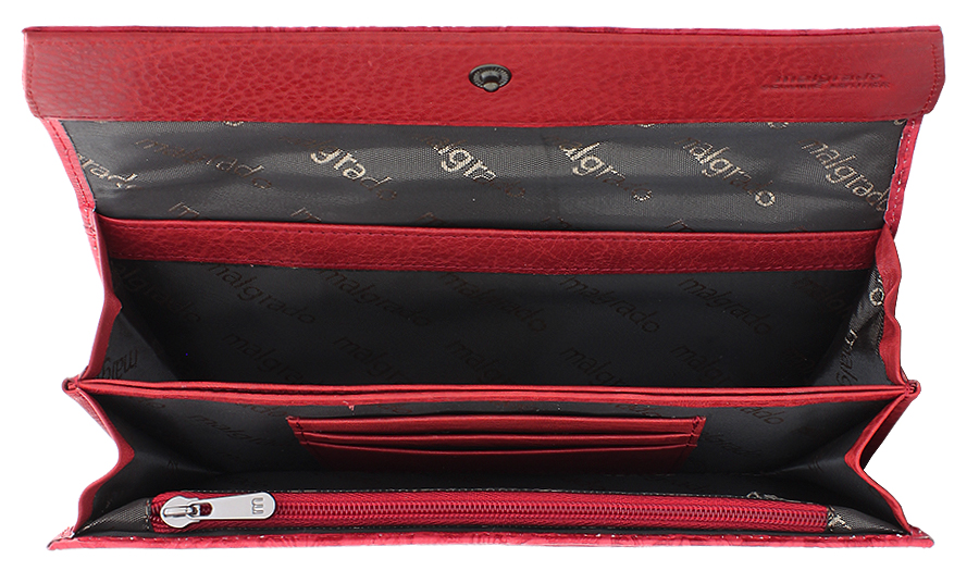 Легкий, удобный кошелек торговой марки Malgrado из натуральной кожи. У кошелька семь основных отделения одно из них на молнии. В кошельке шесть кармашков для карточек, визиток, кредиток, в которые можно положить пропуск, проездной билет или фотографию. Сзади карман. Кошелек закрывается на кнопку.