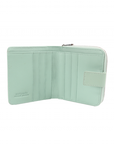 Маленький женский кошелек торговой марки Malgrado из натуральной кожи. В кошельке 4 отделения. Два раздельных отделения для купюр. Одно отделение для 6 банковских и дисконтных карт и два потайных кармашка. Внешняя монетница на металлической молнии с двумя отделами для мелочи. Кошелёк закрывается клапаном на кнопку.