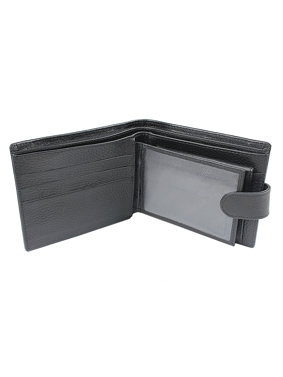 Портмоне торговой марки Malgrado из натуральной кожи. На внутренней левой сторне имеет 3 кармашка для пластиковых карточек и скрытый горизонтальный кармашек. На внутренней левой стороне имеет прозрачный карманудостверения и тоже горизонтальный скрытый кармашек. Также в портмоне 2 больших кармана для купюр. На наружней задней стороне портмоне имеет вместительный карман для мелочи. Закрывается на кнопку.
