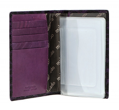Женская обложка для паспорта/автодокументов Malgrado из натуральной лаковой кожи с рисунком под рептилию. С правой стороны 5 кармашков для карточек. Внутри прозрачный съемный пластиковый вкладыш для автодокументов.