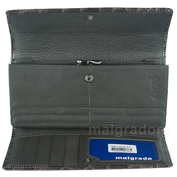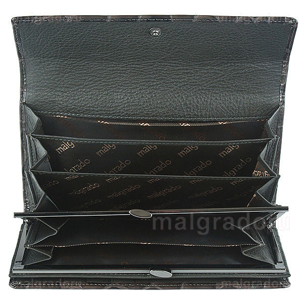 Для размещения купюр в полную длину в кошельке имеются три основных отдела, для мелочи - двухсекционная монетница на рамочном замке. Есть отдельный отсек на кнопке, для десяти пластиковых карт и визиток. Имеется внешний карман на молнии. Кошелек упакован в фирменную металлическую коробку.