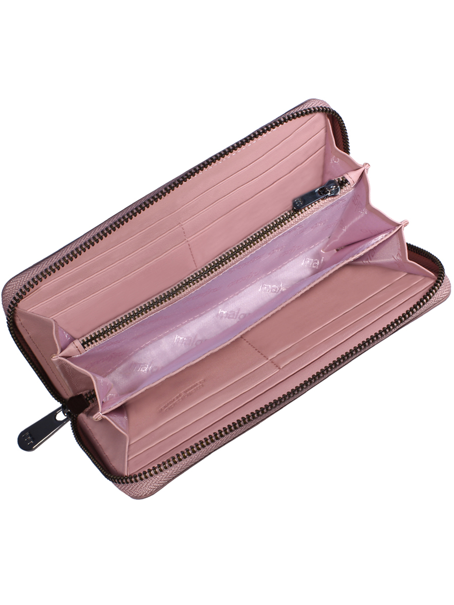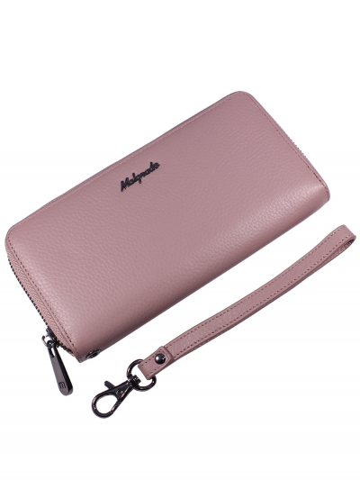 Женский клатч Malgrado из натуральной кожи. Под молнией внутри клатча 4 отделения, одно из них на молнии. В кошельке на боковых стенках есть по 4 кармашка для карточек и по 1 продольному кармашку. Закрывается на металлическую молнию. В комплект входит удобный съёмный кожаный ремешок.
